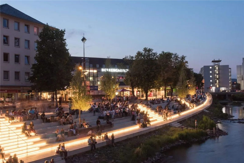 隨著河流的復(fù)興,180米長的新“Siegtreppen”,重新設(shè)計進一步的廣場,長廊和橋梁在附近的勝利贏得了Siegen它的城市中心在河背上。 清晰可讀和慷慨的自由空間結(jié)合了居民對城市生活和“綠色”娛樂的多方面要求,與水元素直接接觸。
