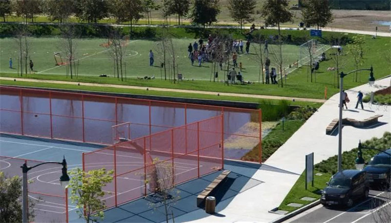 該中心公園面積大約為9英畝,其中的公共區(qū)域也是應(yīng)有盡有,包括幾個小型的運動場,游樂園,足球場,幾個植物小花園,水景和一個殼形的演奏臺。完工后的公園已然成為了該社區(qū)的焦點,人們喜歡茶余飯后來到這里散步閑談,仔細(xì)品味公園的藝術(shù)美和享受生活的樂趣。而且,設(shè)計團隊十分注重人造景觀與自然景觀的和諧,每個區(qū)域都可以直觀的看到美麗的自然環(huán)境。